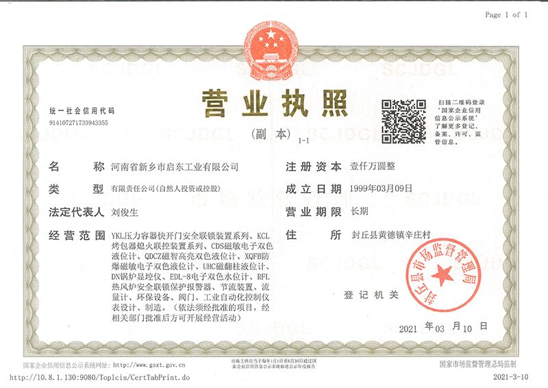 河南省新鄉市啟東工業有限公司始建于1987年,是專注研發、生產自動化儀器儀表(主要與壓力容器、鍋爐等容器配套使用)的廠家。主要產品有液位計(磁敏雙色型、磁翻柱型等)系列、烤包器熄火聯控裝置系列、壓力容器快開門安全聯鎖保護裝置系列、鍋爐報警器系列。二十多年來,公司產品暢銷國內并遠銷俄羅斯、蒙古與東南亞,深得廣大用戶的信賴和好評。我們多年來致力于自動化儀器儀表的研制生產,公司現具有完善的生產、試驗、檢測手段和設備??萍紕撔隆⒄\信服務,是我們不變的經營理念,我們將以強有力的技術支持及售后竭誠為客戶提供良好的服務。  2012年我公司成功研發了KCL系列烤包器熄火聯控裝置,并于2013年2月2日榮獲中華人民共和國國家知識產權局辦法的《實用新型**證書》<**號:2021202257735>該產品廣泛應用于唐鋼等大型鋼鐵企業,為烤包器安全作業提供了有力的保障?! ?002年我公司成功研發磁敏電子雙色液位計獨特的高亮度LED紅綠雙色顯示,獲得了專家的首肯和用戶的一致好評。在此基礎上我公司研發人員十年磨一劍,致力于XQFB-1防爆型磁敏雙色液位計的研發,于2013年12月27日由國家防爆電器產品質量監督檢驗中心檢驗合格并頒發防爆合格證書<編號:cnex19.0883>。該產品性能得到了充分的發揮,廣泛應用于含有Ⅱ類A·B級T1-T4組可燃氣體或蒸汽與空氣混合形成的爆炸性混合物的0區、1區危險場所。連接用戶DCS或PLC系統實現遠距離集中顯示和控制,從而實現節能、數字化管理。為用戶增加了一定的經濟效益和社會效益,。2014年公司成功申請了夢潤儀表的logo,新的品牌新的形象,夢潤儀表是啟東的LOGO, 歡迎新老用戶前來洽談合作?! ∥覀円蝗缂韧刈⒅乜蒲械耐度?,憑借產品的不斷更新、加大科技含量,進一步拓展市場。我們相信品質成就未來,以過硬質量、優惠價格、完善的售后服務熱忱歡迎廣大客戶來我司視察指導、洽談業務;精誠合作,共創輝煌!